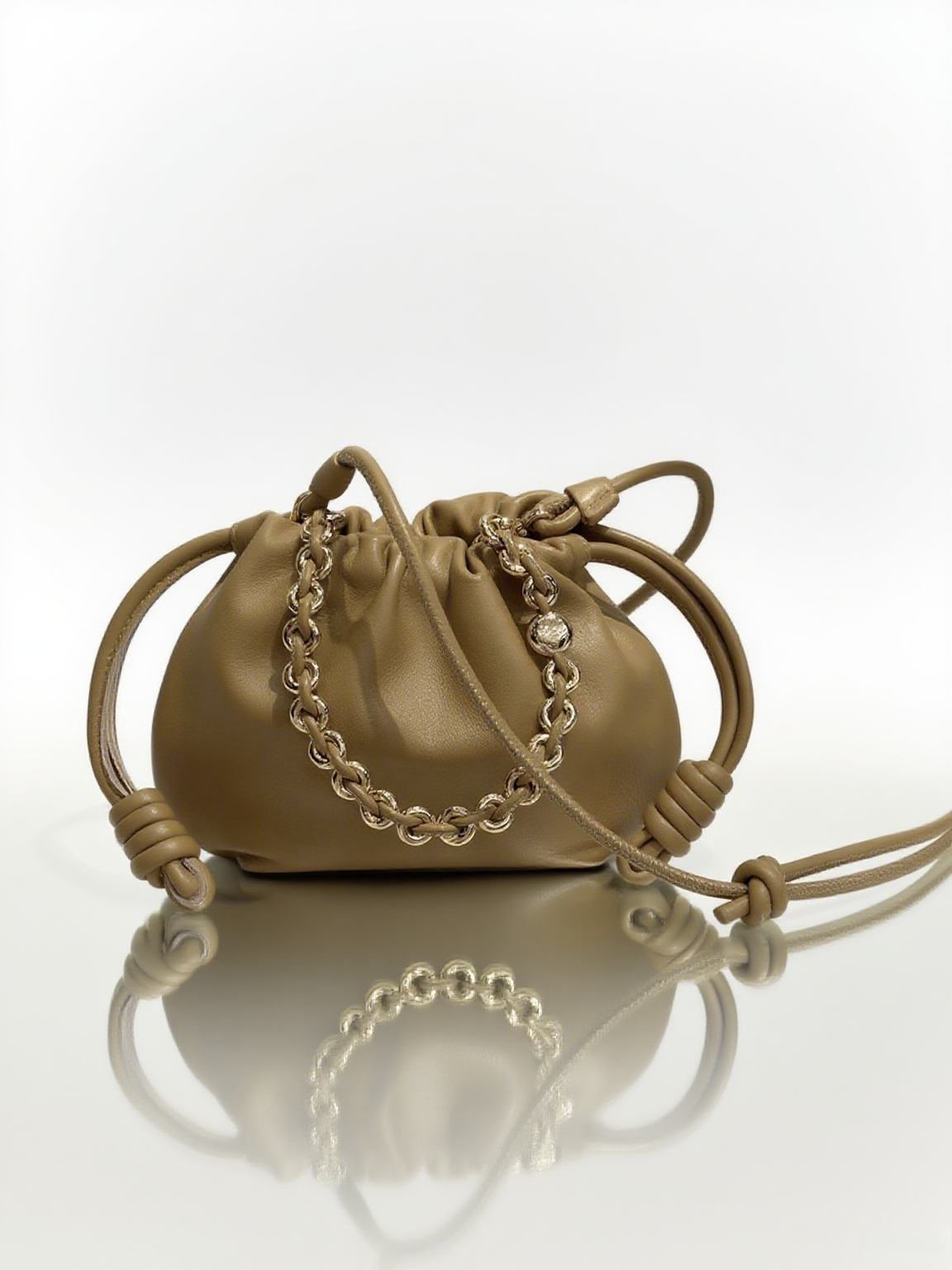 Bruma es la fusión perfecta entre suavidad y carácter. Su estructura tipo pouch con cierre fruncido y su cadena dorada le aportan un aire chic y desenfadado. Compacto pero impactante, este bolso es ideal para llevar lo esencial con estilo en cualquier ocasión especial o una salida nocturna con actitud.